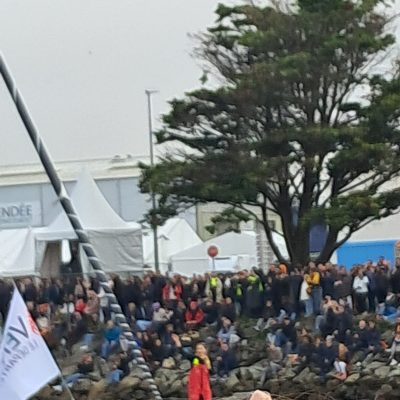 Levés pour certains comme nous en milieu de nuit, pour être le long du mythique chenal des Sables d’Olonne dès 5 H, nous sommes tous présents pour fêter le 1er passage des bateaux à partir de 7h, une parade qui s’étalera jusque 10h, avec un départ de la course à 13h02.